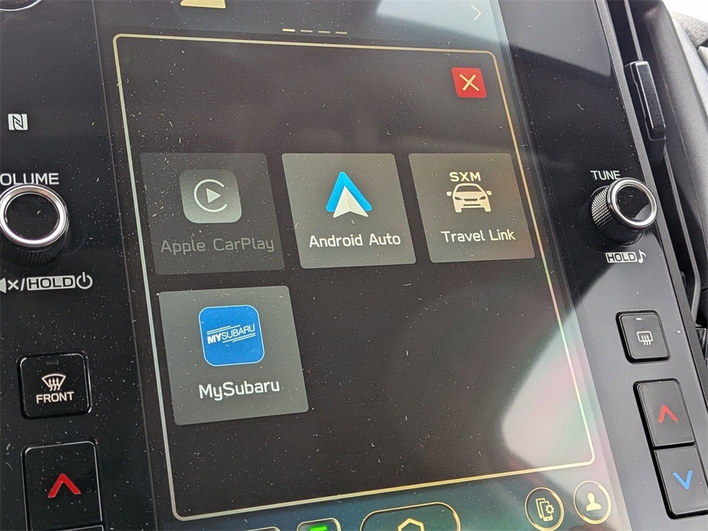 - Radio: Subaru 11.6" Multimedia Plus System -inc: AM/FM stereo, HD Radio, multi-touch gesture high resolution display screen, voice activated controls, Bluetooth® audio streaming and hands-free phone connectivity, Bluetooth® hands-free SMS text messaging connectivity, iPod control capability, smartphone integration: wired and wireless Android Auto w/full screen view and wireless Apple CarPlay w/full screen view, USB and Over The Air (OTA) audio system update, steering wheel audio system and Bluetooth® control switches, 6 speakers (2 dash panel tweeter, 2 front door and 2 rear door), illuminated 3.5mm auxiliary input jack, illuminated front USB A and C input/charge ports, connected services operation indicator, SOS emergency assistance: red SOS button and enhanced roadside assistance: blue i-button