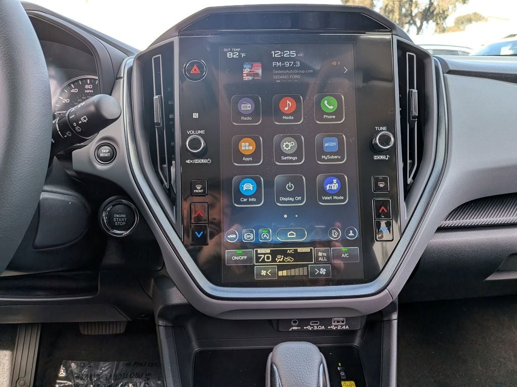 - Radio: Subaru 11.6" Multimedia Plus System -inc: AM/FM stereo, HD Radio, multi-touch gesture high resolution display screen, voice activated controls, Bluetooth® audio streaming and hands-free phone connectivity, Bluetooth® hands-free SMS text messaging connectivity, iPod control capability, smartphone integration: wired and wireless Android Auto w/full screen view and wireless Apple CarPlay w/full screen view, USB and Over The Air (OTA) audio system update, steering wheel audio system and Bluetooth® control switches, 6 speakers (2 dash panel tweeter, 2 front door and 2 rear door), illuminated 3.5mm auxiliary input jack, illuminated front USB A and C input/charge ports, connected services operation indicator, SOS emergency assistance: red SOS button and enhanced roadside assistance: blue i-button