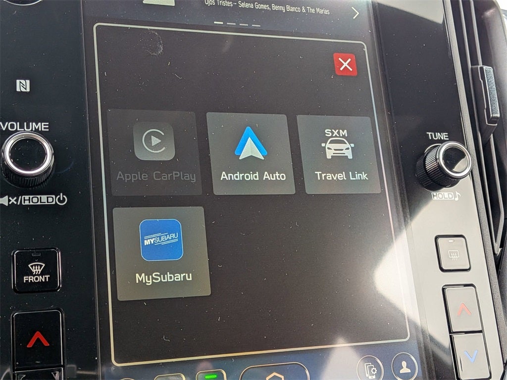 - Radio: Subaru 11.6" Multimedia Plus System -inc: AM/FM stereo, HD Radio, multi-touch gesture high resolution display screen, voice activated controls, Bluetooth® audio streaming and hands-free phone connectivity, Bluetooth® hands-free SMS text messaging connectivity, iPod control capability, smartphone integration: wired and wireless Android Auto w/full screen view and wireless Apple CarPlay w/full screen view, USB and Over The Air (OTA) audio system update, steering wheel audio system and Bluetooth® control switches, 6 speakers (2 dash panel tweeter, 2 front door and 2 rear door), illuminated 3.5mm auxiliary input jack, illuminated front USB A and C input/charge ports, connected services operation indicator, SOS emergency assistance: red SOS button and enhanced roadside assistance: blue i-button