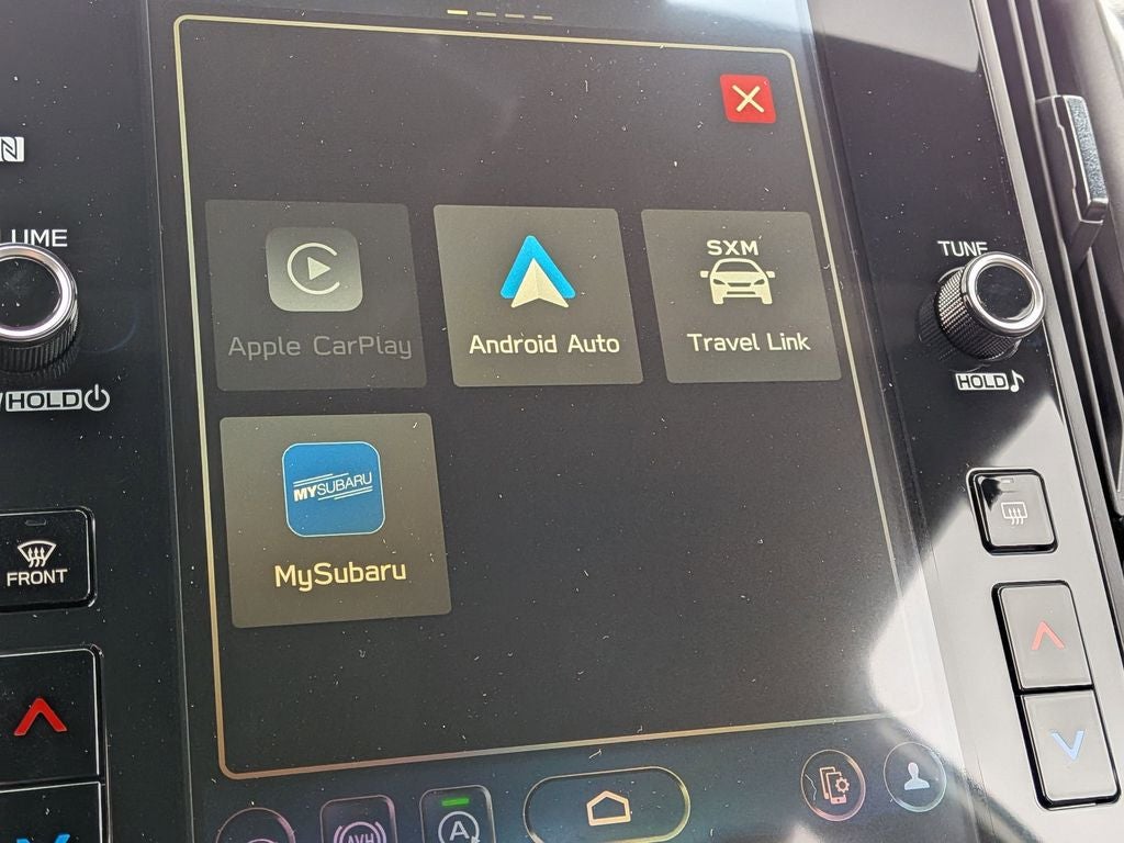 - Radio: Subaru 11.6" Multimedia Plus System -inc: AM/FM stereo, HD Radio, multi-touch gesture high resolution display screen, voice activated controls, Bluetooth® audio streaming and hands-free phone connectivity, Bluetooth® hands-free SMS text messaging connectivity, iPod control capability, smartphone integration: wired and wireless Android Auto w/full screen view and wireless Apple CarPlay w/full screen view, USB and Over The Air (OTA) audio system update, steering wheel audio system and Bluetooth® control switches, 6 speakers (2 dash panel tweeter, 2 front door and 2 rear door), illuminated 3.5mm auxiliary input jack, illuminated front USB A and C input/charge ports, connected services operation indicator, SOS emergency assistance: red SOS button and enhanced roadside assistance: blue i-button