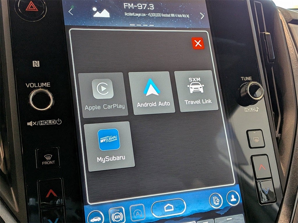 - Radio: Subaru 11.6" Multimedia Plus System -inc: AM/FM stereo, HD Radio, multi-touch gesture high resolution display screen, voice activated controls, Bluetooth® audio streaming and hands-free phone connectivity, Bluetooth® hands-free SMS text messaging connectivity, iPod control capability, smartphone integration: wired and wireless Android Auto w/full screen view and wireless Apple CarPlay w/full screen view, USB and Over The Air (OTA) audio system update, steering wheel audio system and Bluetooth® control switches, 6 speakers (2 dash panel tweeter, 2 front door and 2 rear door), illuminated 3.5mm auxiliary input jack, illuminated front USB A and C input/charge ports, connected services operation indicator, SOS emergency assistance: red SOS button and enhanced roadside assistance: blue i-button