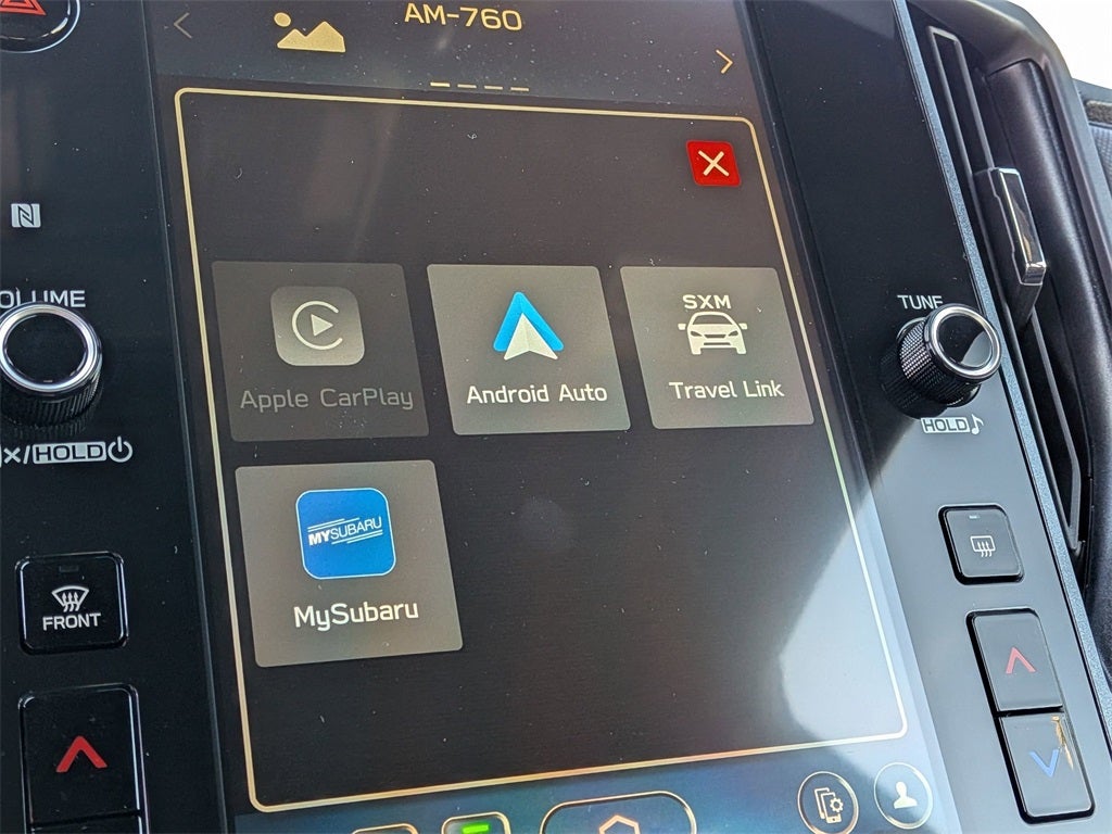 - Radio: Subaru 11.6" Multimedia Plus System -inc: valet mode, integrated center information display, AM/FM stereo HD Radio, multi-touch gesture high resolution display screen, voice activated controls, Bluetooth® audio streaming and hands-free phone connectivity w/SMS text messaging (refer to Subaru.com for cellphone compatibility), iPod control capability, smartphone integration: Android Auto and Apple CarPlay w/full screen view and wireless connection, SiriusXM satellite radio w/360L (free 4-month trial subscription included), USB and Over The Air (OTA) audio system update, steering wheel controls, 6 speakers, 3.5mm auxiliary input jack and roof mounted audio and satellite antenna