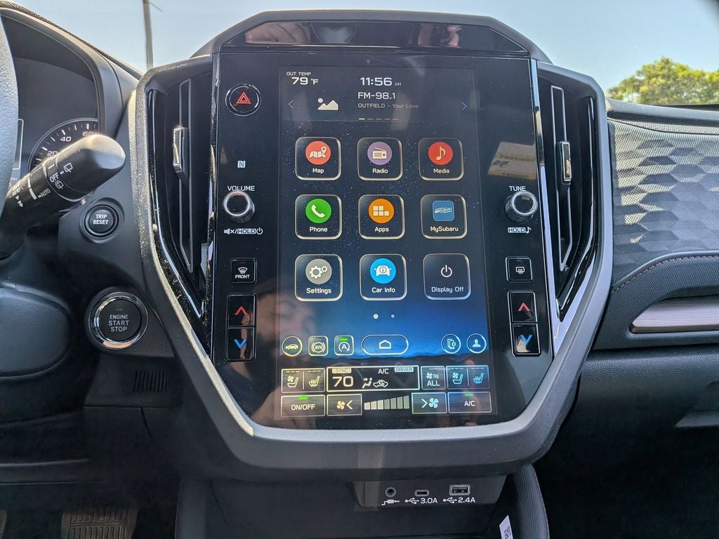 - Radio: Subaru 11.6" Multimedia Navigation System -inc: valet mode, integrated center information display, AM/FM stereo HD Radio, multi-touch gesture high resolution display screen, voice activated controls, voice activated navigation, Bluetooth® audio streaming and hands-free phone connectivity w/SMS text messaging (refer to Subaru.com for cellphone compatibility), TomTom navigation software w/what3words, iPod control capability, smartphone integration: Android Auto and Apple CarPlay w/full screen view and wireless connection, SiriusXM satellite radio w/360L (free 4-month trial subscription included), USB and Over The Air (OTA) audio system update, USB and Map Over The Air (MOTA) TomTom navigation system update (3 years free map updates), steering wheel controls, harman/kardon speaker system w/11 speakers and 576 watt equivalent maximum output amplifier, 3.5mm auxiliary input jack and roof mounted audio, satellite antenna and SiriusXM Travel Link (4 months free trial included/subscription required after)