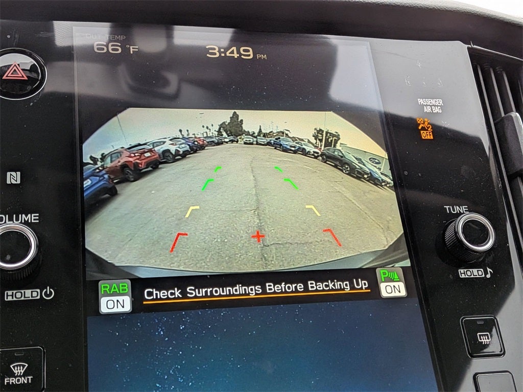 Moonroof & Nav & Heated Steering Whl & DriverFocus (360 Degrees Heated Steering Wheel, Driver Monitoring System (DMS)/DriverFocus, Power Moonroof, and Radio: Subaru STARLINK 11.6 Multimedia Nav System), Subaru Certified Pre-Owned Certified, 12 Speakers, 4-Wheel Disc Brakes, ABS brakes, Air Conditioning, Alloy wheels, AM/FM radio: SiriusXM with 360L, Anti-whiplash front head restraints, Auto High-beam Headlights, Auto-dimming Rear-View mirror, Automatic temperature control, Brake assist, Bumpers: body-color, Cargo Tray, Compass, Driver door bin, Driver vanity mirror, Dual front impact airbags, Dual front side impact airbags, Electronic Stability Control, Emergency communication system: STARLINK Safety Plus (3-year free trial), Exterior Auto-Dimming Mirror w/Approach Light, Exterior Parking Camera Rear, Four wheel independent suspension, Front anti-roll bar, Front Bucket Seats, Front Center Armrest w/Storage, Front dual zone A/C, Front fog lights, Front reading lights, Fully automatic headlights, Garage door transmitter: HomeLink, harman/kardon® Speakers, Heated door mirrors, Heated Front Bucket Seats, Heated front seats, Heated rear seats, Illuminated entry, Knee airbag, Leather steering wheel, Low tire pressure warning, Memory seat, Occupant sensing airbag, Outside temperature display, Overhead airbag, Overhead console, Panic alarm, Passenger door bin, Passenger vanity mirror, Perforated Leather-Trimmed Upholstery, Power door mirrors, Power driver seat, Power passenger seat, Power steering, Power windows, Radio: Subaru STARLINK 11.6 Multimedia Plus Sys, Rear anti-roll bar, Rear seat center armrest, Rear Seatback Protector, Rear window defroster, Remote keyless entry, Security system, Speed control, Speed-sensing steering, Split folding rear seat, Steering wheel mounted audio controls, Tachometer, Telescoping steering wheel, Tilt steering wheel, Traction control, Trip computer, Turn signal indicator mirrors, Variably intermittent wipers, Wheels: 18 x 7.5J Gray Mach Finish Aluminum-Alloy, and Wireless Charger.